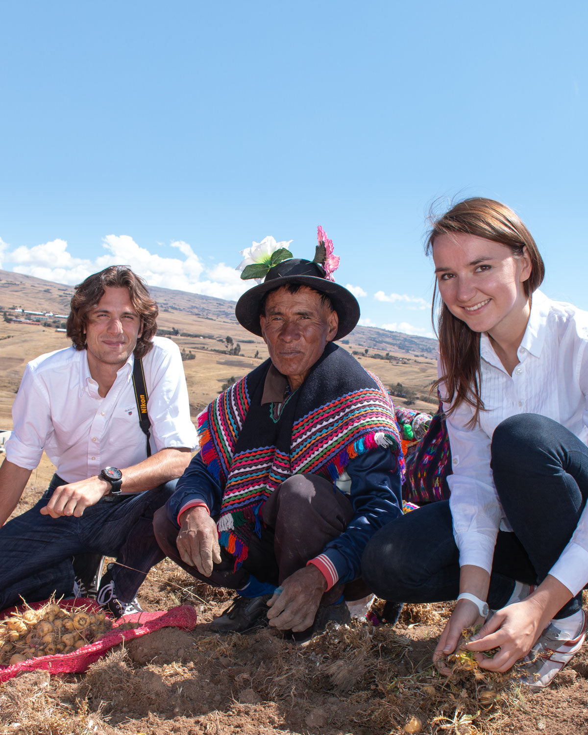 Our Co-founders Dimi and Katya with our Maca farming community 4,260m above sea level in Peru.